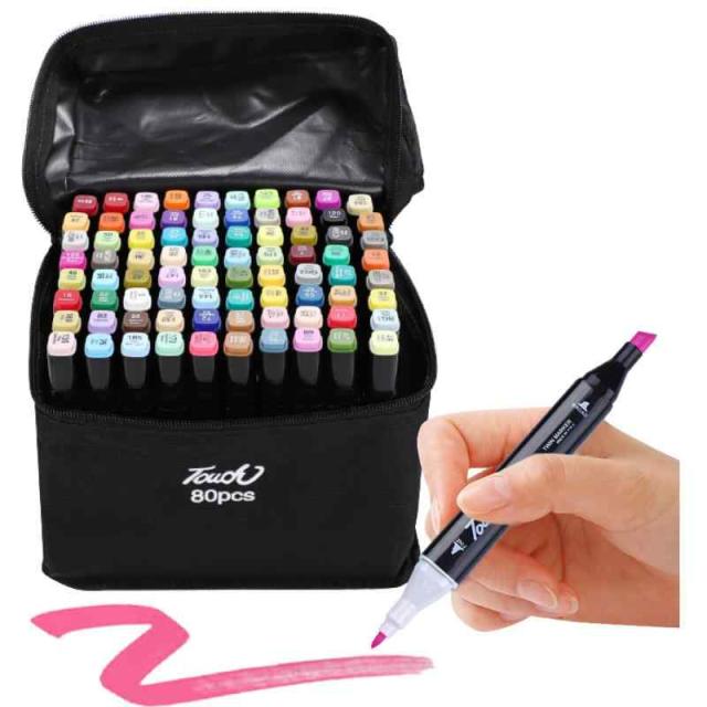 マーカーペン 80色 セット イラスト 漫画 コミック 漫画 塗り絵 太細両端 アルコールマーカー
