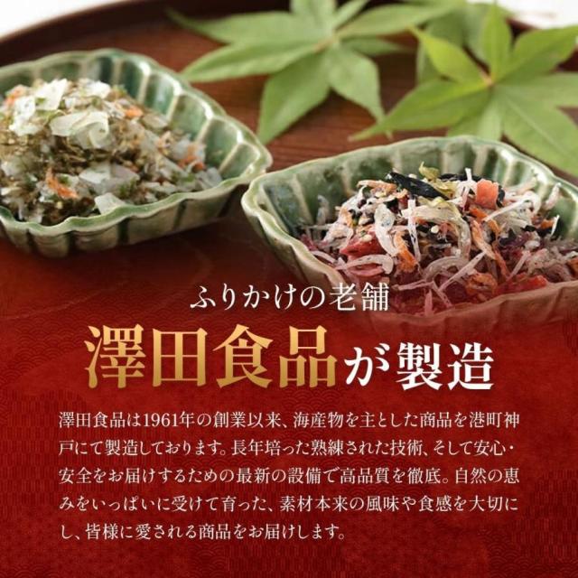 メディアで多数紹介の大人気!全国ふりかけグランプリ3年連続金賞受賞!第56回全国水産加工たべもの展農林水産大臣賞受賞!よしもと47シュフランご飯のお供部門金賞受賞!通も唸る澤田食品のふりかけシリーズです。