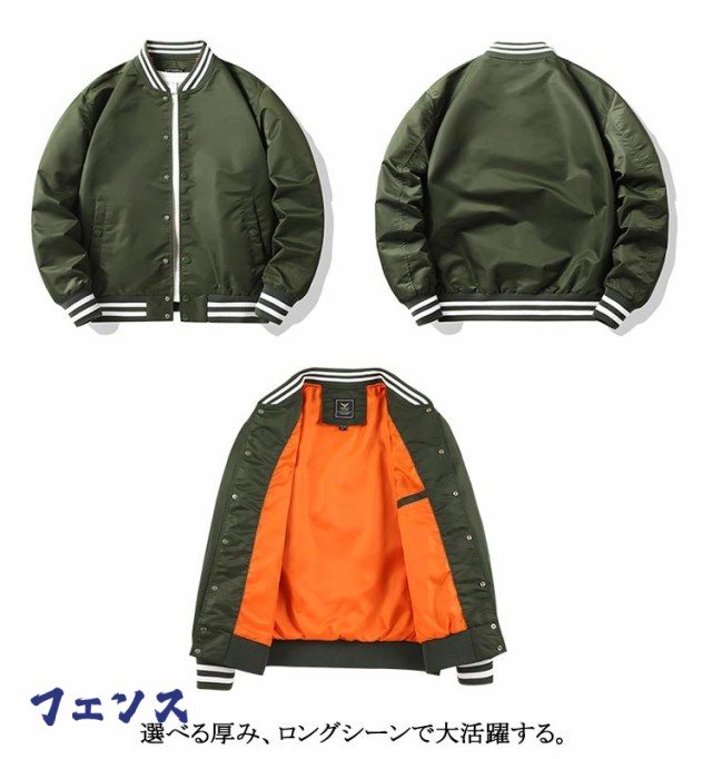 MA1 ジャケット メンズ スタジャン ブルゾン ジャンパー フライトジャケット ミリタリー スタジアムジャケット アウター スポーツ ナイロンジャケット 中綿入り 野球服 ma-1ジャケット ジャケット バイク キャンプ 春物