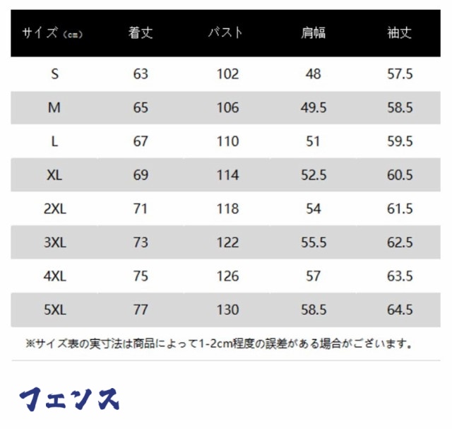 | サイズ | S M L XL 2XL 3XL 4XL 5XL |