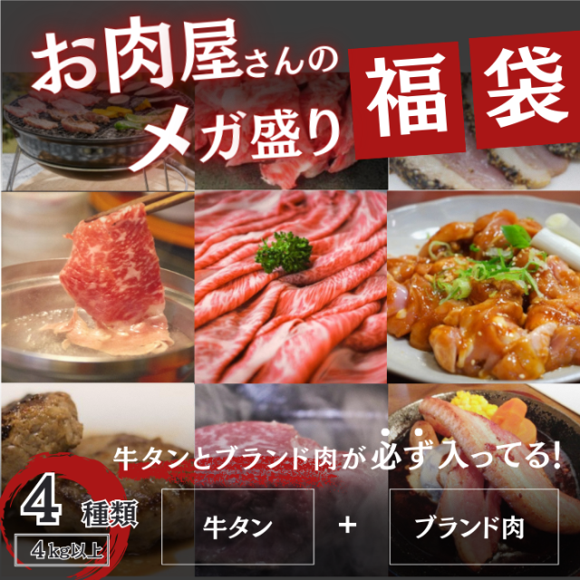 送料無料 超得 メガ盛り 肉福袋 4kg以上 お肉 詰合せ 牛タン ブランド肉 必ず入る 15,000円相当 焼肉 切り落とし