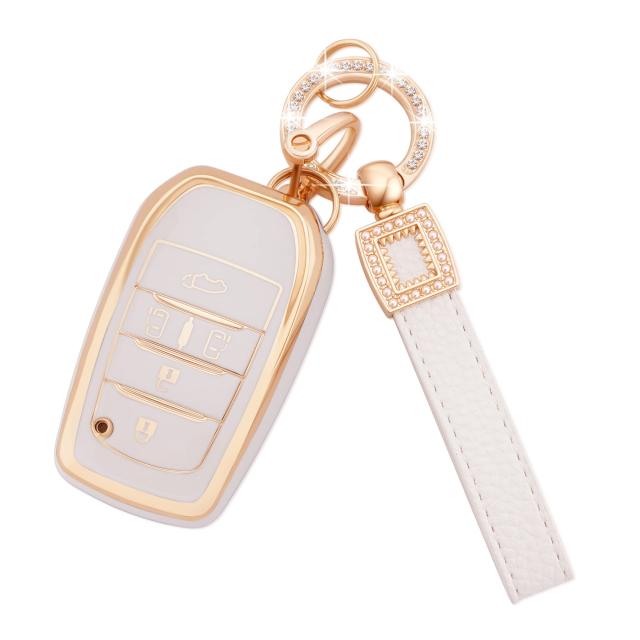 ・【パッケージ】 この車のキーカバーキットは、TPUキーフォブケース(キーフォブを含まない)、1つの紛失防止バックル、1つのゴールドブリングキーホルダー、2つの小さなキーリング、1ランヤードとドライバーで来るだろう。それはあなたの車のキーの一見を豪華および涼しい作ることができ、ク リ ス マ ス、感謝祭、誕生日のあなたの友人か家族のためのよいギフトです。