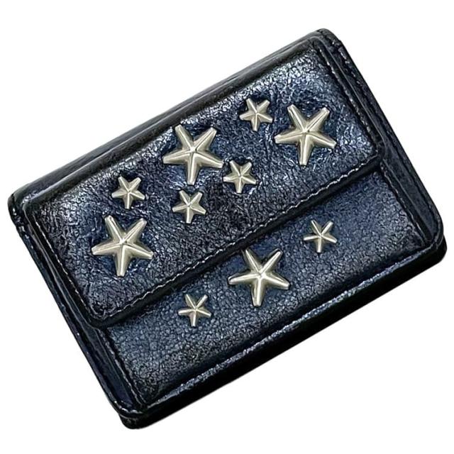ジミーチュウ 三つ折り 財布 ec-23261 メタリック ブルー コンパクト レザー スタッズ 中古 JNY3G7 JIMMY CHOO ホック 星 コンパクト 定番 人気 女性 レディース 小さい ミニ 革 青色 青 小物 ウォレット エレガント お洒落 高級感 上品 ブランド 本物 鑑定済み
