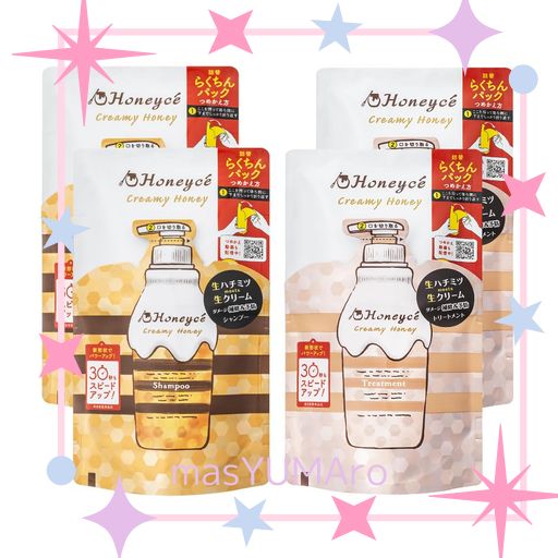 【セット買い】 ハニーチェ クリーミーハニー シャンプー&トリートメント 詰め替えセット 各2個 [はちみつ ノンシリコンシャンプー ヘアケア 日本製 ダメージ補修 サロン品質 つめかえ]