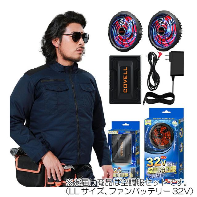 【在庫処分】G.B.Z 空調冷風服 COVELL 空調服セット(長袖タイプ+ファンバッテリーセット32V) LLサイズ 濃紺 【品番:P004-BLUE-LL32】