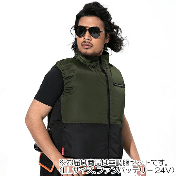 【在庫処分】G.B.Z 空調冷風服 COVELL 空調服セット(ベストタイプ+ファンバッテリーセット24V) LLサイズ カーキ&ブラック 【品番:MJ-A01-green-LL24】