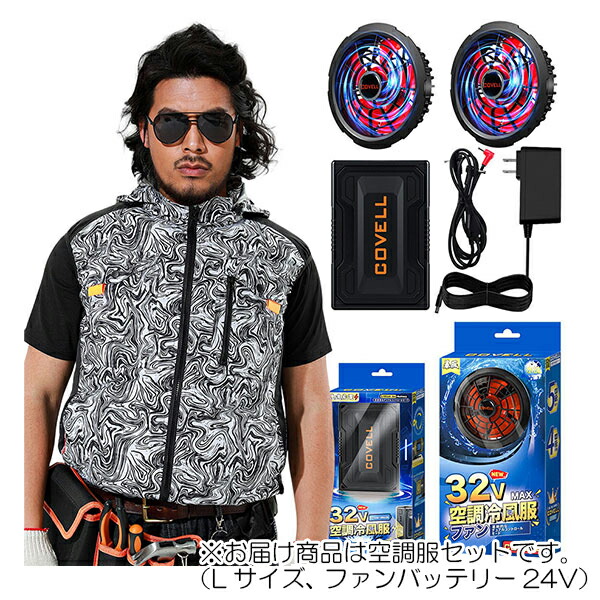 【在庫処分】G.B.Z 空調冷風服 COVELL 空調服セット(フード付ベストタイプ+ファンバッテリーセット24V) Lサイズ 液体迷彩 【品番:G1-XQ2-L24】