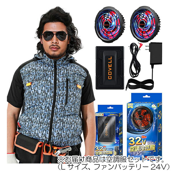 【在庫処分】G.B.Z 空調冷風服 COVELL 空調服セット(フード付ベストタイプ+ファンバッテリーセット24V) Lサイズ 青スクエア迷彩 【品番:G1-XQ3-L24】