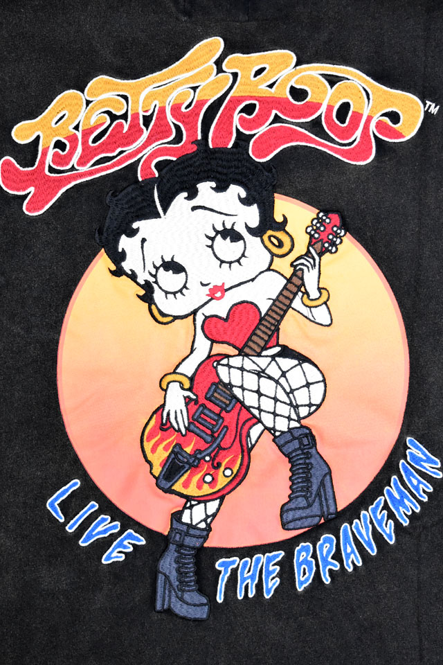 背中にはギターをかき鳴らすロックなベティが刺繍で描かれています。