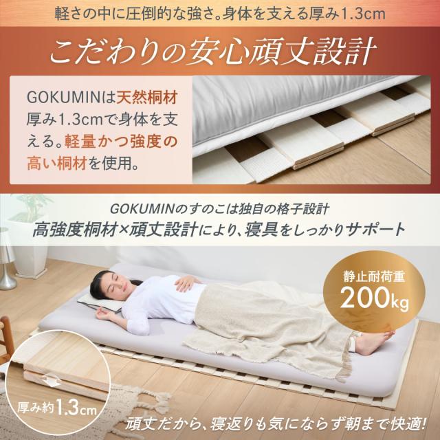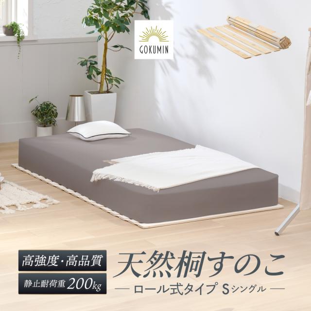 すのこマット シングル 桐 すのこベッド GOKUMIN ロール式 四つ折り 4つ折り 頑丈 通気性 除湿 軽量 防腐 防虫 四つ折り コンパクト 組立不要 国産 天然 すのこ 1年保証 滑り止め 傷防止 室内干し 折畳 折り畳みベッド 湿気 結露対策