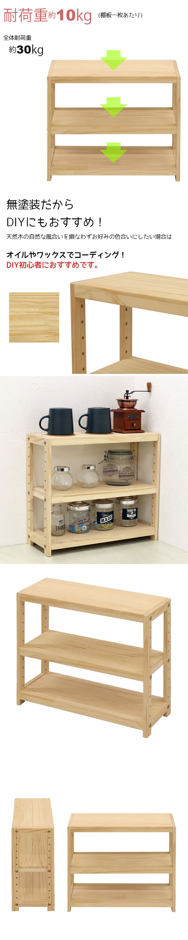 商品名:ミニラック 3段 2個セット 木製 卓上 奥行18cm(奥行20cm未満) 耐荷重30kg(棚板1枚あたり10kg) 頑丈 幅45cm 高さ40cm スパイスラック 卓上ラック パインラック 天然木無塗装 ナチュラルテイスト キッチン収納 デスク上ラック デスク収納 スリム 小さい すき間 狭い場所 省スペース