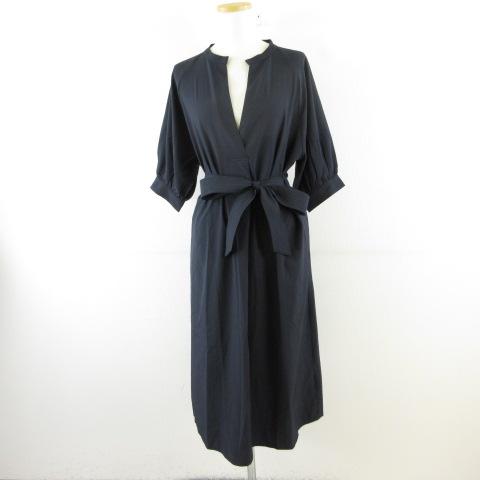 【中古】エンジェリーベ ANGELIEBE ワンピース マタニティ 七分袖 ミディ丈 ストレッチ 紺 F *T567 レディース