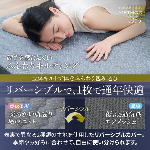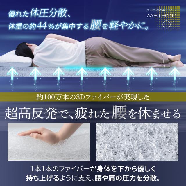 ?多数の受賞歴を誇る日本ブランドGOKUMINが、腰まわりに不安を感じる方のために開発した、"腰に特化したマットレス"。長年の腰の悩みに、ひとつの終止符を——翌朝の目覚めで、その違いをぜひご体感ください。