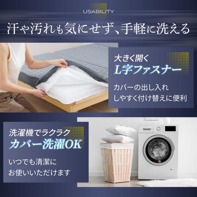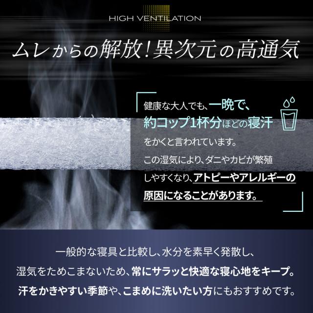 ウレタン系マットレスは汗や皮脂を吸収し、数年で細菌の温床に。リライブファイバーマットレスなら、カバーも中材も水洗い可能。また、通気性に優れた構造で湿気がこもりにくく、寝汗の多い方やアレルギーにお悩みの方でも快適な寝心地が長続き。