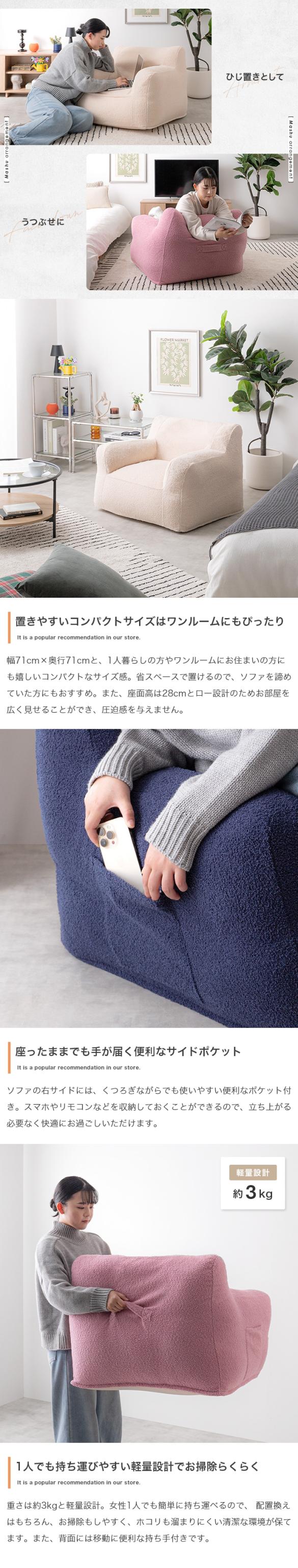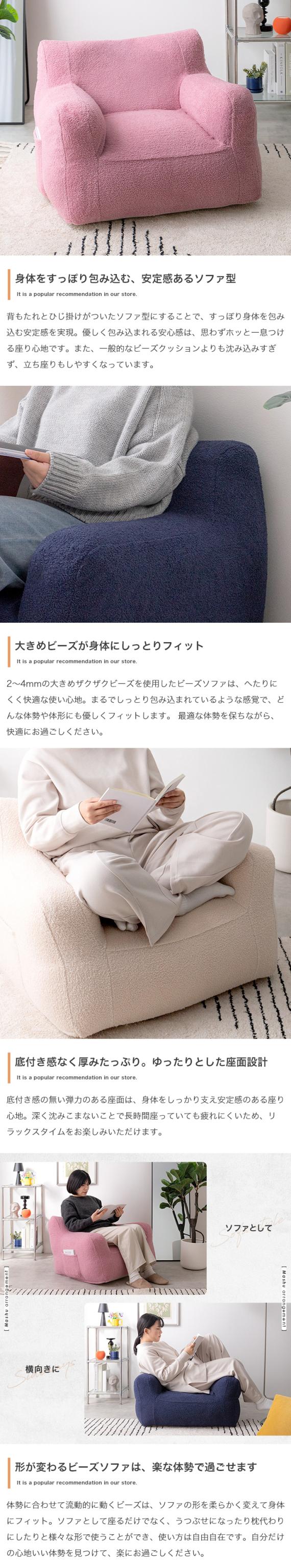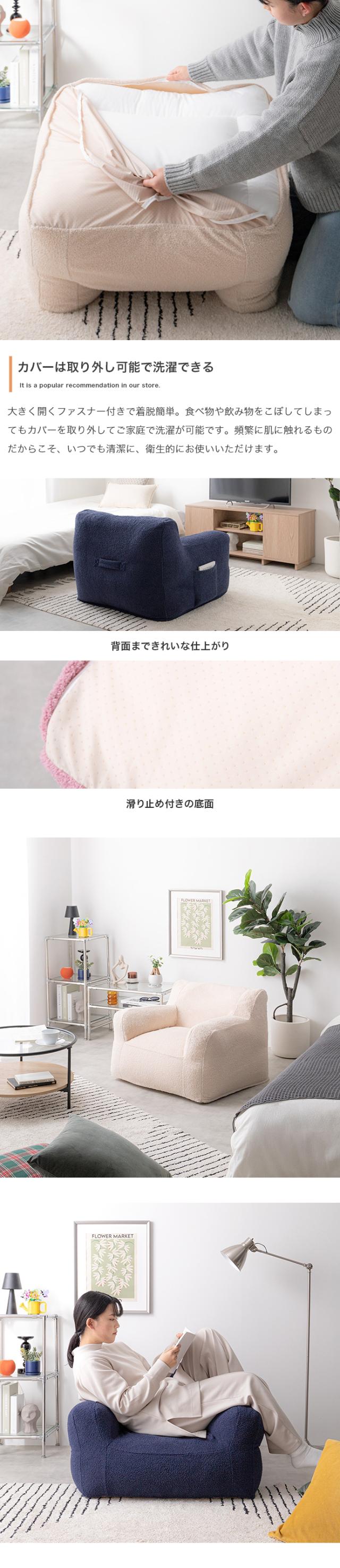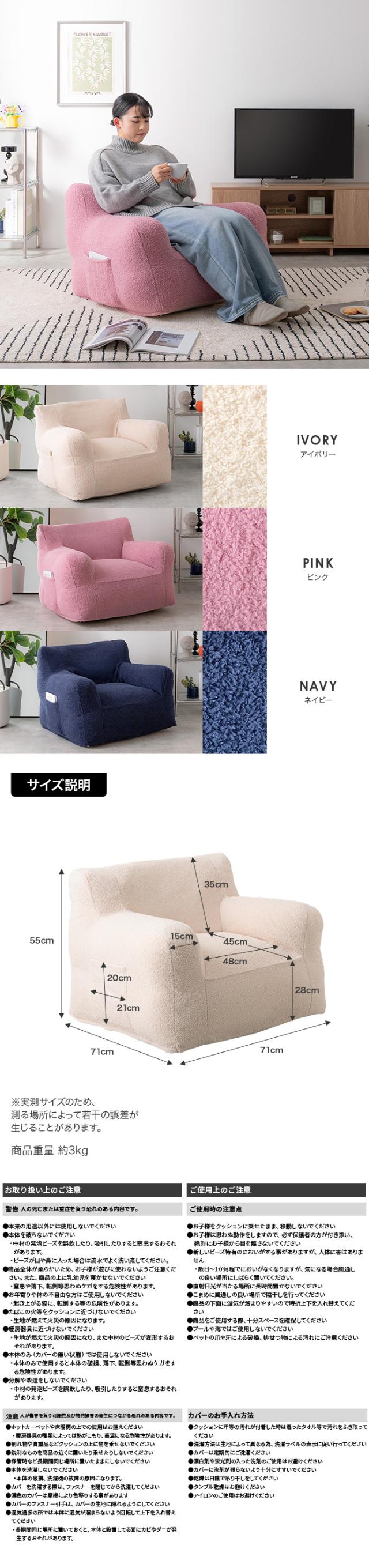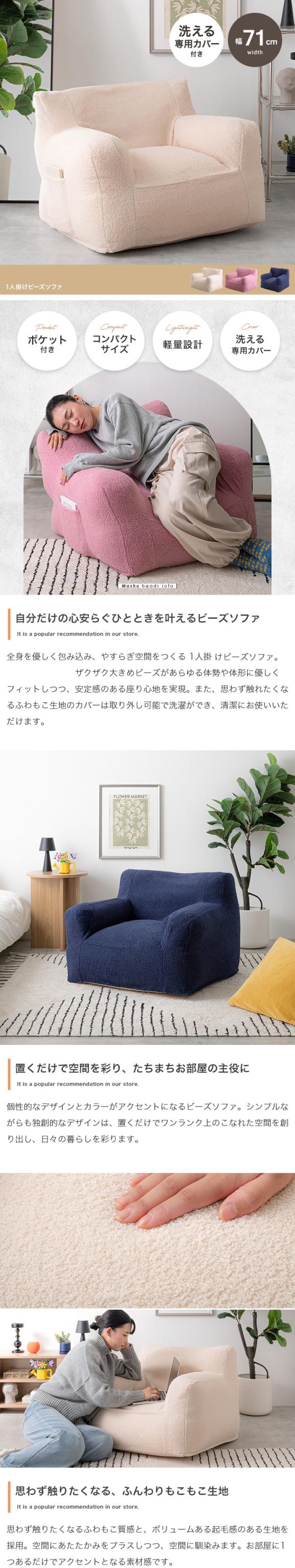 ビーズソファ 1人掛けソファ アイボリー ネイビー ピンク 幅71cm×奥行71cm×高さ55cm(座面高:28cm) カバー取り外し可能 1Pソファ 一人掛け 北欧インテリア COSHU