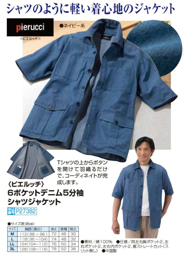 ピエルッチ 6ポケットデニム5分袖 シャツジャケット ネイビー系 デニムシャツ デニムジャケット 五分袖 メンズ 紳士服 シニア 男性 紺色 コットン シャツ デニム素材 デニム生地 カジュアル シンプル 40代 50代 60代 70代 80代 90代 父の日 お父さん 春夏 sai p27382