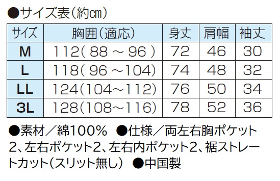 ●仕様/両左右胸ポケット2、左右ポケット2、左右内ポケット2、裾ストレートカット(スリット無し)