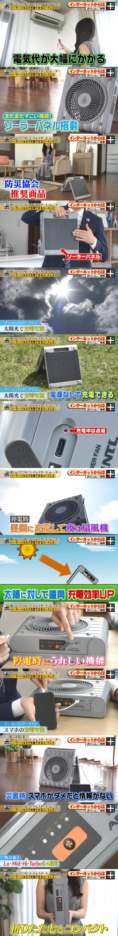 どこでも運べてパワフルな送風!ソーラーパネルで充電できるコードレスサーキュレーター
