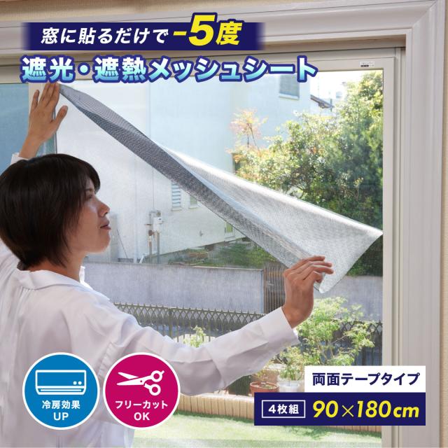 遮光・遮熱メッシュシート 4枚組 90×180cm 屋内貼り用 窓 目隠し フィルム 遮光 シート 遮光シート はがせる 窓用フィルム 遮熱シート 遮光 遮熱 断熱シート UVカット 紫外線カット 日射熱カット 日差し対策 防犯 西日対策 貼り付け簡単 両面テープ フリーカット