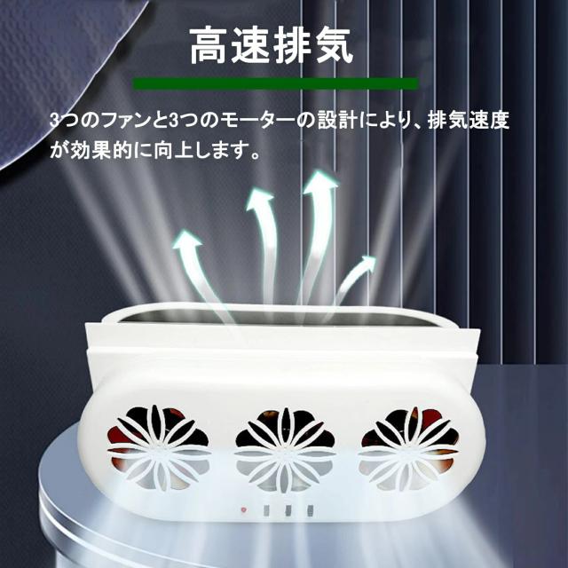 3つのファン換気扇を採用しており、多角度で排気が速く、死角を残さず、より効率的3つのファンは強いです。 空気と停車中の車の外に熱風を吹き、快適な温度レベルを維持異臭や悪臭を放つ臭いに削除されます。