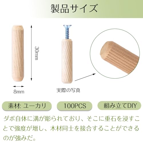木ダボ 木工ダボ 木 ダボ ダボマーカー 木材 連結 棚 木製のダボ 棚ダボ 家具 つなぎ ジョイント ダボ継ぎ 8X30mm 約100個