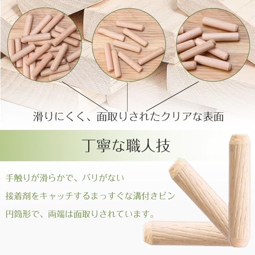 接着剤を受け取り、簡単に挿入できるように溝付きと斜めになっています。簡単な挿入と優れた固定のための面取りされた端。木工用の木ダボです ダボ結合時の穴あけマーキングに。板接ぎなど材木の接合に重宝しています。