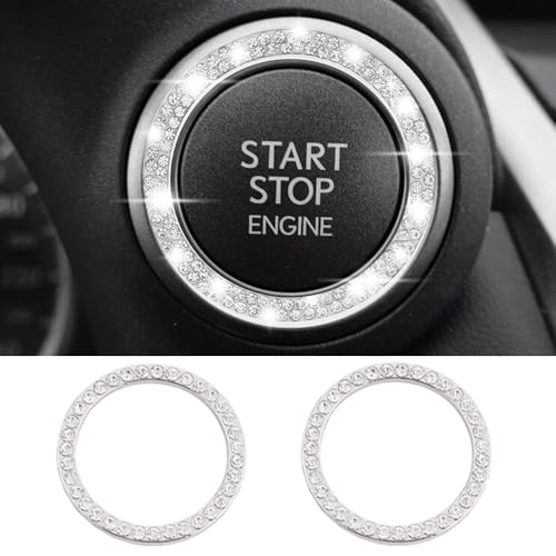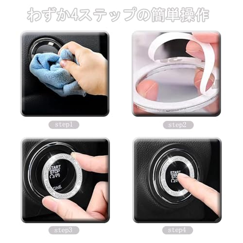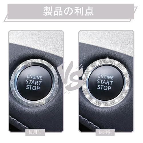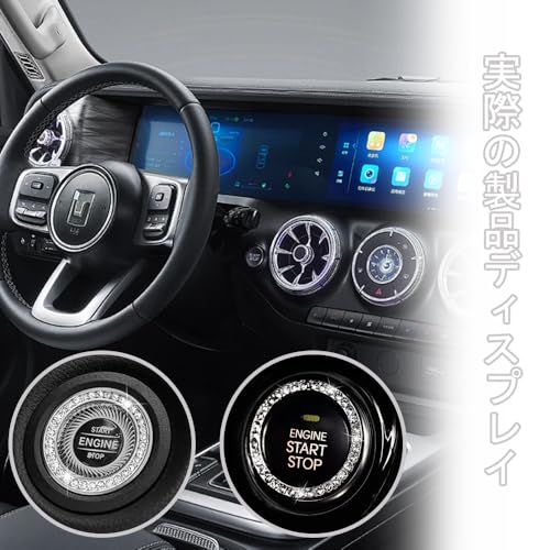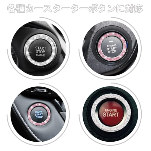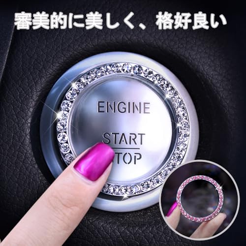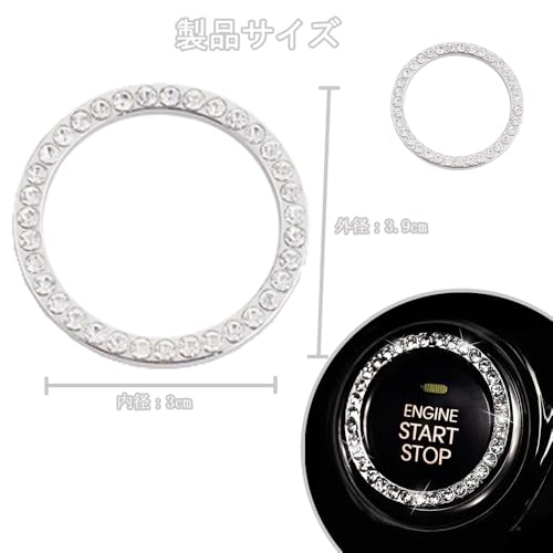 エンジン スタート ボタン 汎用 エンジンスタートボタンリング エンジン スタートボタンリング カー用品 車内 アクセサリー 装着簡単 汎用 両面テープ付き (2個セット ダイヤ1列)