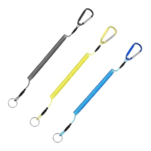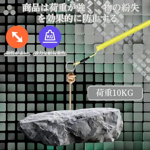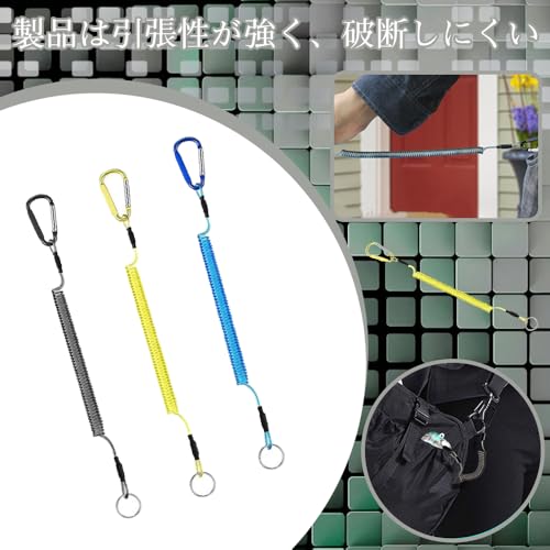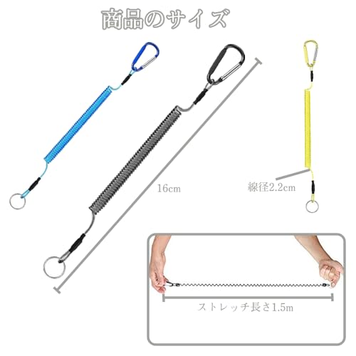 スパイラルコード 落下防止コード コイルキーチェーン スパイラルコード 尻手ロープ 落下 盗難 紛失防止 耐荷重27kg 長短最大伸び1.5m 携帯便利 ロッドバンド 釣り道具用ストラップ(ブラック+ブルー+イエロー)