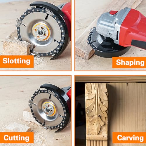 用途:グラインダーチェンソーアタッチメントは、曲面、木材、切り株、フローリング、寄木細工(広葉樹)、プラスチック、氷、ゴムなどの彫刻や整形作業に適しています。