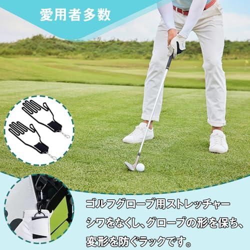 練習や遊んだ後は、手袋をゴルフグローブハンガーにスライドするだけで、簡単に操作できます。ゴルフグローブハンガーは軽量で、プッシュ式キーフックが付属しているので、キャディーバッグ、ゴルフカートなどに簡単に掛けることができます。持ち運びと取り出しに便利です。