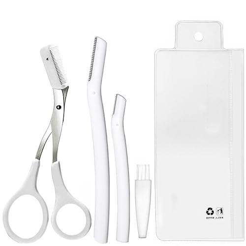 眉毛セット 眉毛カット 眉毛はさみ 5点セット クシ付きハサミ 眉毛剃り 眉毛コーム 眉メイクアップ道具 初心者用 美容 美顔 コーム付き クリーニングブラシ 収納袋付 旅行 出張 持ち運び便利 男女兼用 化粧小物(ホワイト)