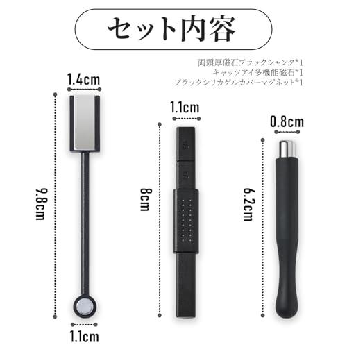 【セット内容】両頭厚磁石ブラックシャンク、キャッツアイ多機能磁石1個、ブラックシリカゲルカバー磁石1個を含む。