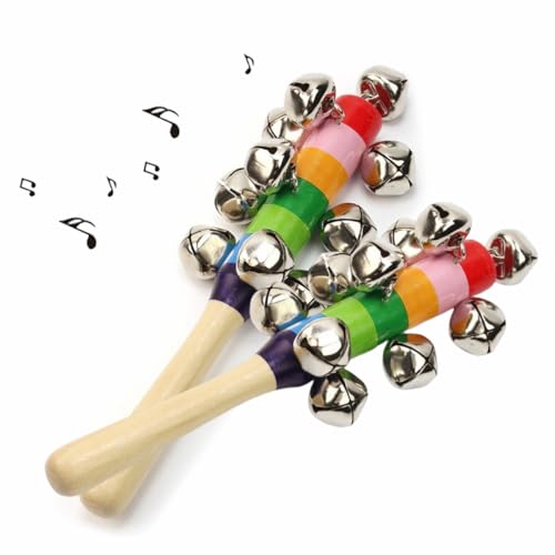 ハンドベル ミュージックベル 木製 ベビ 虹 ベル クリスマスハンドジングルベル 子供の楽器 赤ちゃん 打楽器 レッスン お遊戯 音楽玩具 ベルを鳴らす ハンドコールベル ミュージカルリズムおもちゃ 2個セット