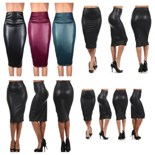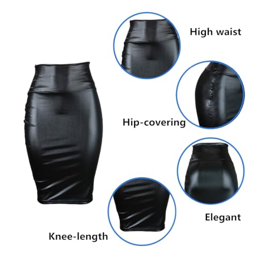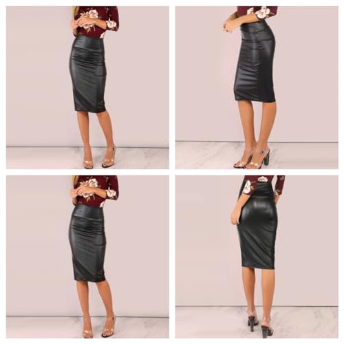 レディース PU スカート ハイウエスト ボディコン ペンシル ミディ スカート ブラック フェイクレザー ラップ オフィス スカート 伸縮性のあるカジュアル スリム ヒップラップ ペンシル ドレス
