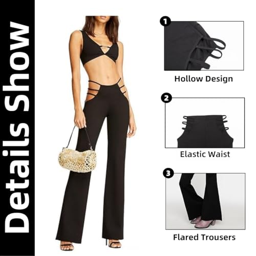 デザイン:透かし彫りのフレアパンツ、スタイリッシュでセクシーなスタイル、簡単に完璧な曲線を形作る。