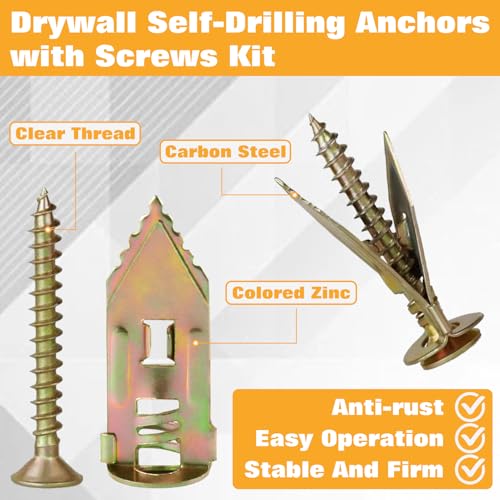 材質:アンカーは炭素鋼製で、表面は防錆亜鉛メッキが施されており、長期間の使用に耐えられます。ネジは、硬度が高く、透明で深いねじ山のプレミアムメタルでできており、変形や破損しにくいです