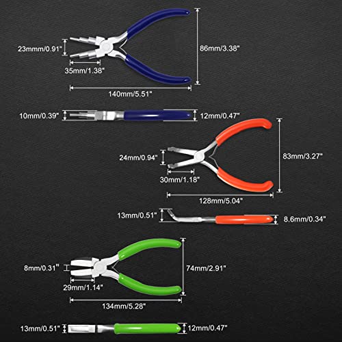 材質:高炭素鋼;サイズ:ジュエリークリンププライヤー:128 x 83 x 13mm / 5.04 x 3.27 x 0.51 '; 6 in 1ベイルメイキングプライヤー:140 x 86 x 10mm / 5.51 x 3.38 x 0.39';ナイロンノーズプライヤー:134 x 74 x 10mm / 5.28 x 2.19 x 0.39 ';注意:1。