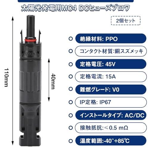 MC4逆流防止ダイオード ソーラーパネ ソーラーパネル MC4ダイオードコネクタ ソーラーパネル用 逆流防止ダイオード 太陽光発電コネクタMC4対応 電流15A 電圧 45v IP67防水 PPO素材 耐熱 防塵 防水 2個セット
