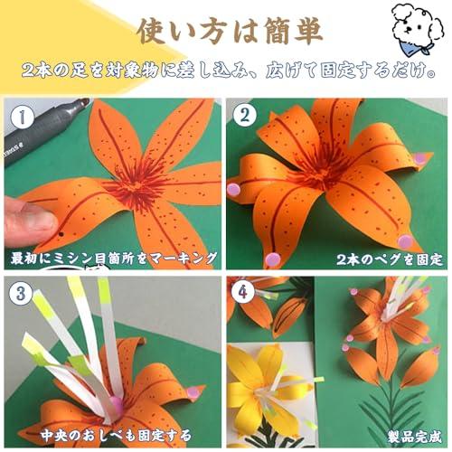 使用方法:と交換と繰り返して使えます、留めたい場所に小さめの一穴パンチや押しピンなどで穴を開け、裏の金具を差し込んで左右に開くだけ。