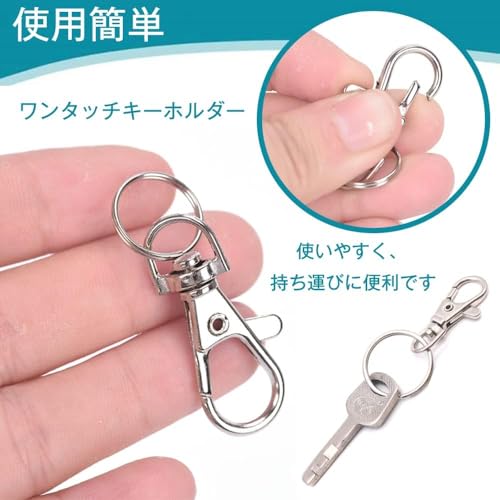 使用簡単:ハンドメイドで人気の高いワンタッチキーホルダーなので、簡単に取りつけ、こともでも扱いやすいです。丸印フラットリングは、カードのバックル、アクセサリー、チェーンなどのアクセサリーを接続するのに便利です。使いやすく、持ち運びに便利です