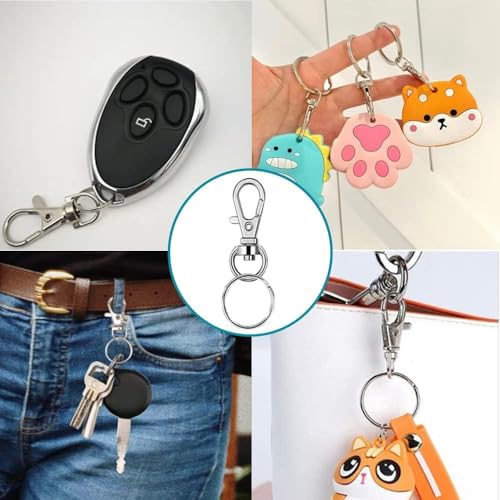 25個セット キーホルダー金具 二重リング キーホルダー 回転フック ワンタッチで取り外し 平キーリング 2連リング付き キーホルダー キーリング DIY用 手芸用品 シルバーカラー
