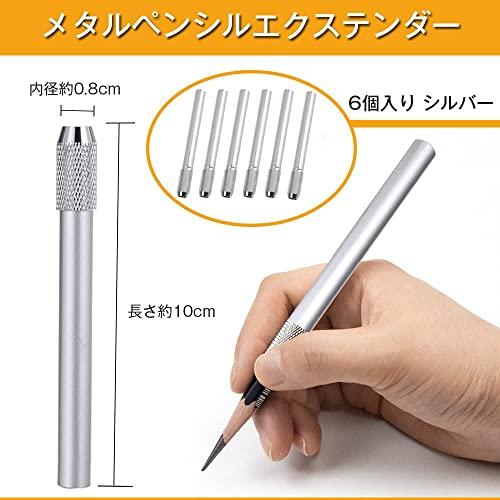 鉛筆延長ホルダー 鉛筆キャップ 補助軸 アルミニウム製 軽量 鉛筆エクステンダ 姿勢矯正 子供 学校 筆記用具 美術生 デッサン用具 持ちやすい 短い鉛筆用 補助軸 (6本セット シルバー)