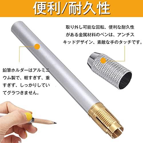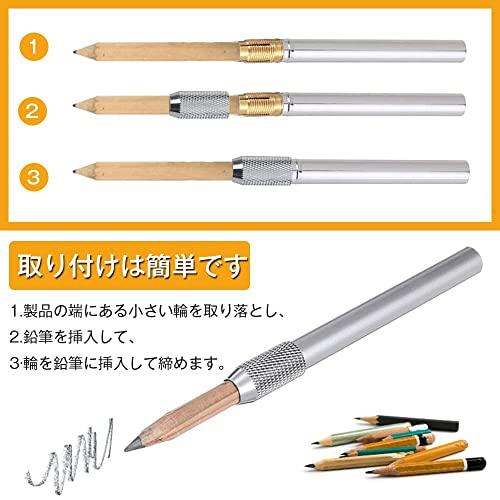 【材質】アルミニウム製の鉛筆ホルダー。超軽量で持ち運びやすくて錆びにくくて耐久性があります。 再利用可能です。ペンホルダーの滑り止め処理により、体を握りやすくし、長期間使用した後の疲労を軽減しますので。
