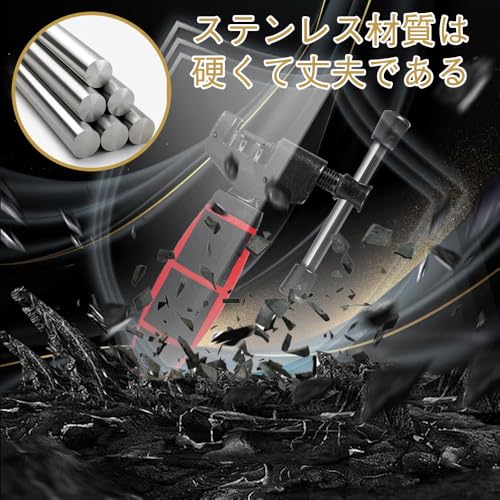 【厳選素材】高い耐久性を持つ合金鋼製のチェーンカッター。鍛造および淬火加硬工程を経ており、精密なねじが安定性を高めています。