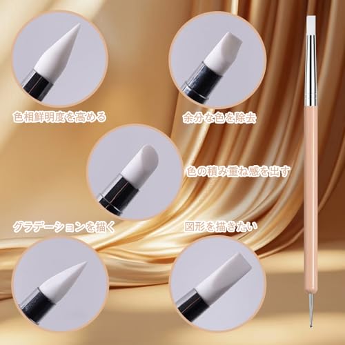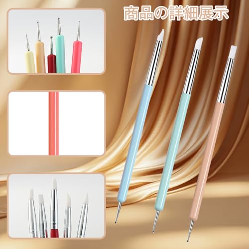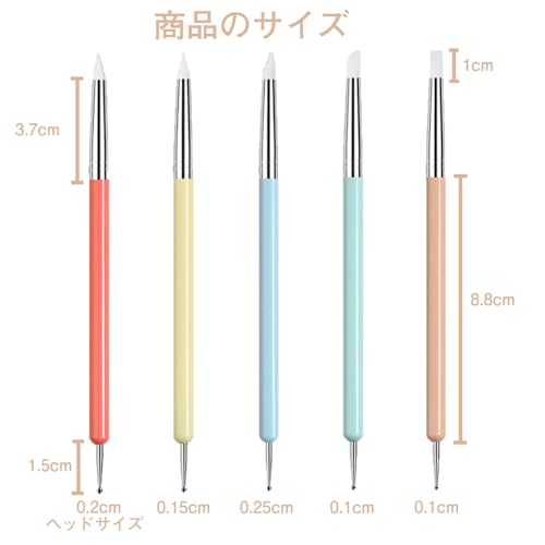 【セット内容】セット内容は、両端ヘッドのネイル 筆5本が含まれています。一端はドットペン、もう一端はシリコンブラシ。