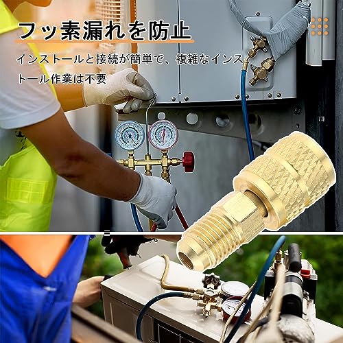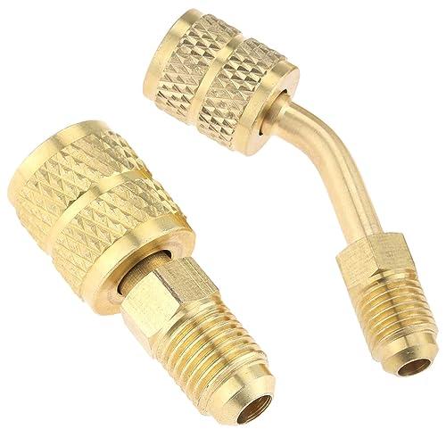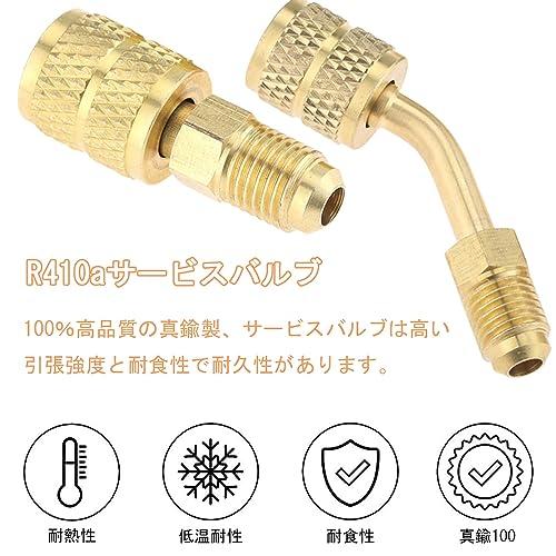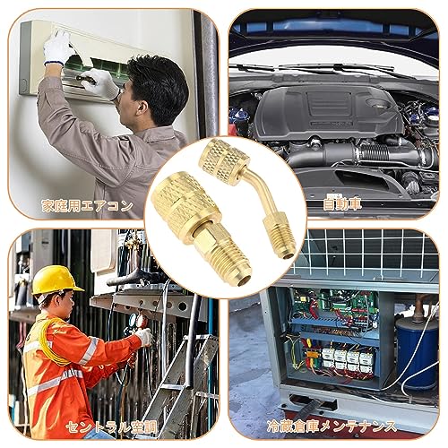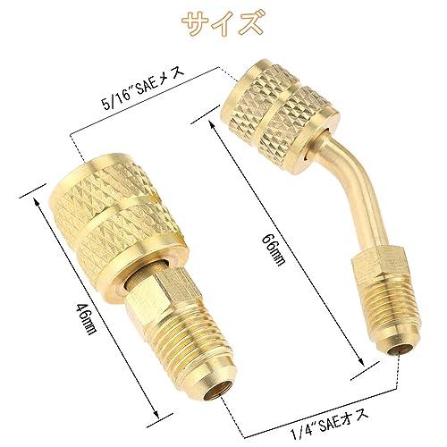 R410a コントロールバルブ 変換アダプター ガスチャージバルブ 2個入りセット エアコン 1/4 'から5/16'変換ヘッドアダプター ミニスプリットHVACシステム用(45度角タイプ/180度角タイプ各1個)