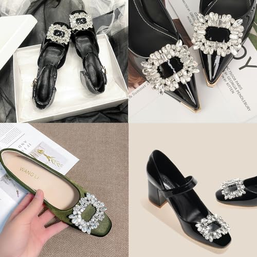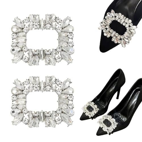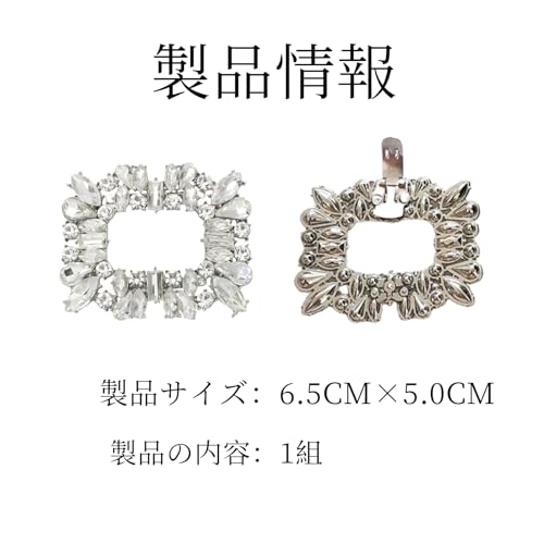 シューズクリップ 2個入り 靴のブローチ 靴飾り長方形 パンプス 装飾品 人工水晶 汎用性 耐久性 簡単取り外し可能 左右対称 ワンタッチ着脱 結婚式 パーティー入学式