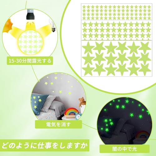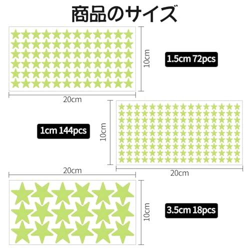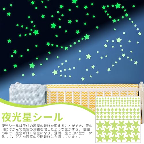 蓄光シール 夜光ステッカー 星 大容量 [3サイズ 合計406枚入り] 夜光シール 光るステッカー 暗闇で光る インテリア 蓄光 壁紙 幼稚園 保育園 子供部屋飾り 壁 天井 DIY 部屋飾り雰囲気満点