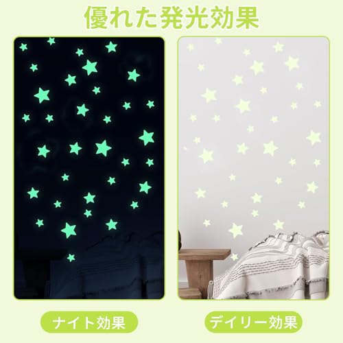【美しい夜光効果】この夜光ウォールステッカーは、昼間に光を吸収し、夜には柔らかな夜光を放出します。寝室、リビングルーム、子供部屋など、どこにでも素敵な夜光効果を演出します。夜に美しい夜光効果を楽しみ、あなたの家に魅力を加えましょう。