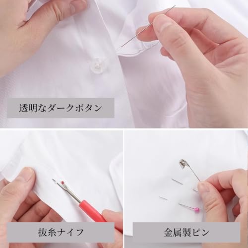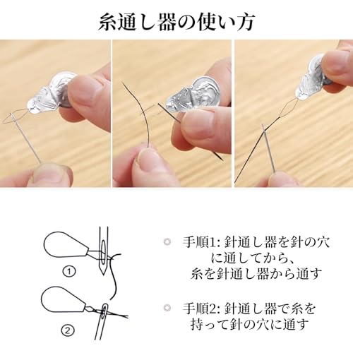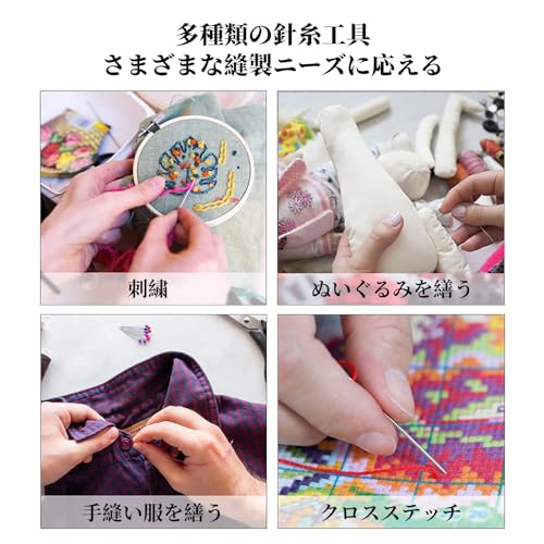 【お得なソーイングキット】ソーイングキットにはソーイングに必要な道具がすべて含まれています、付属品:カラーループ*14、巻尺*1、金属指ぬき*1、糸切り*1、クレヨン*1、隠しボタン*4、金属ボタン針*10、はさみ*1、白ボタン*3、真珠針*40、金属糸巻き*2、針トレー(16個)*1、収納袋*1(合計98個)。